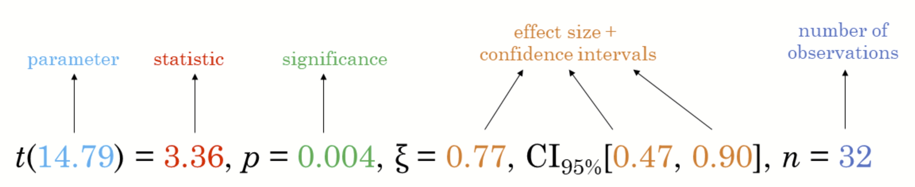 Default information: - statistical details - Bayes Factor - sample sizes - distribution summary