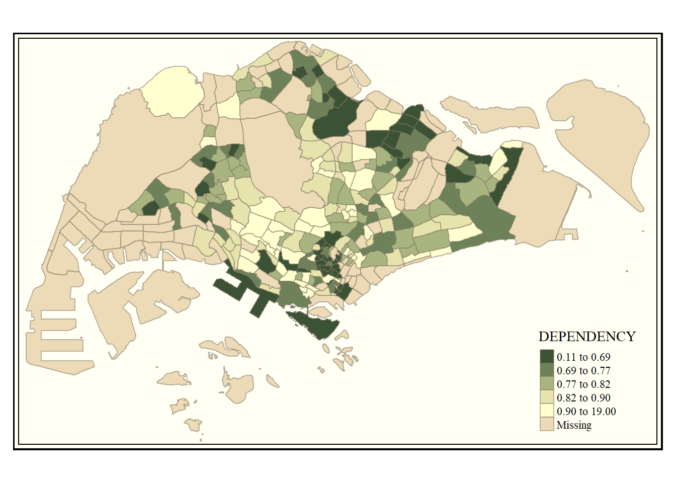 tm_layout(main.title = "Distribution of Dependency Ratio \nby planning subzone",
