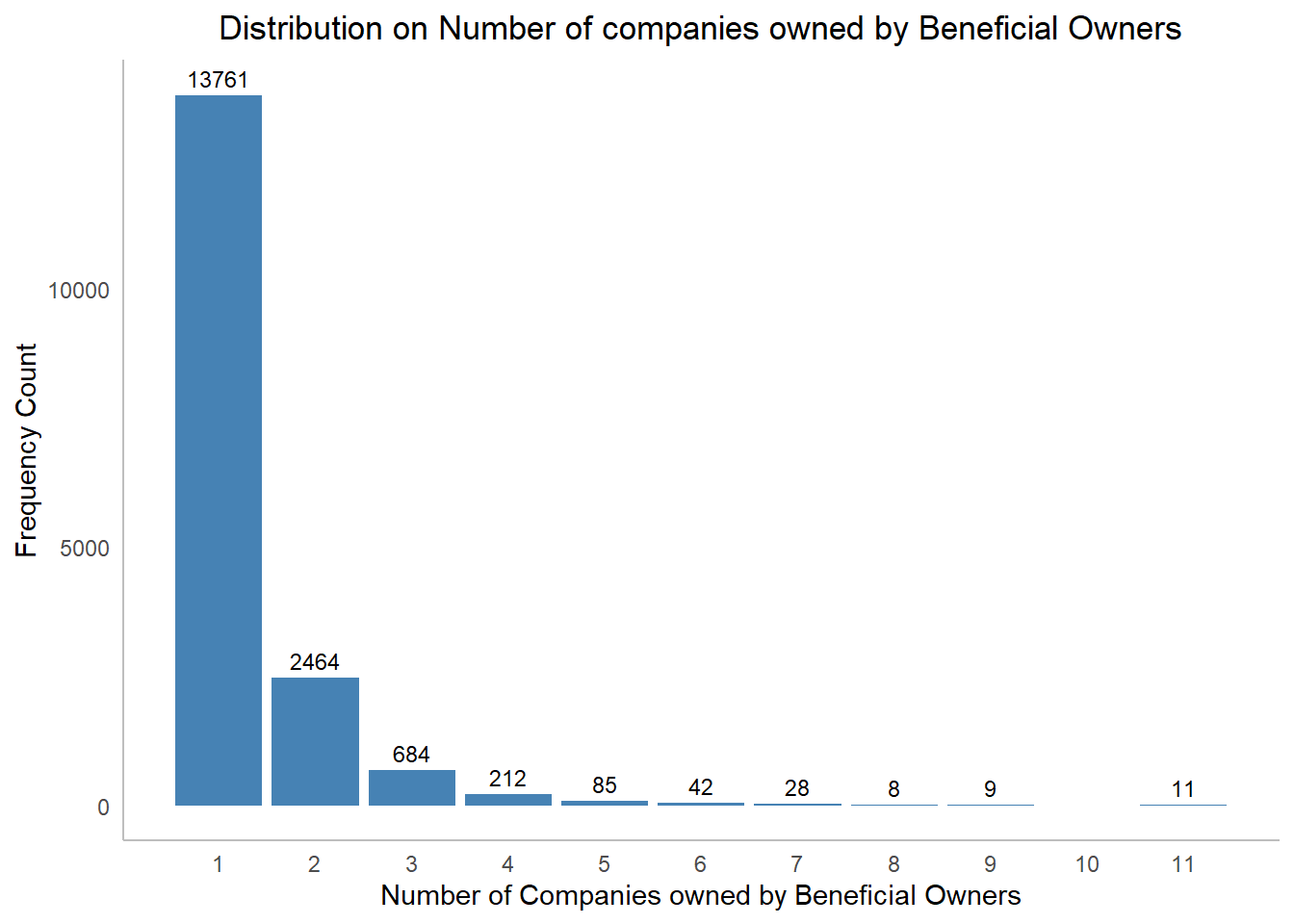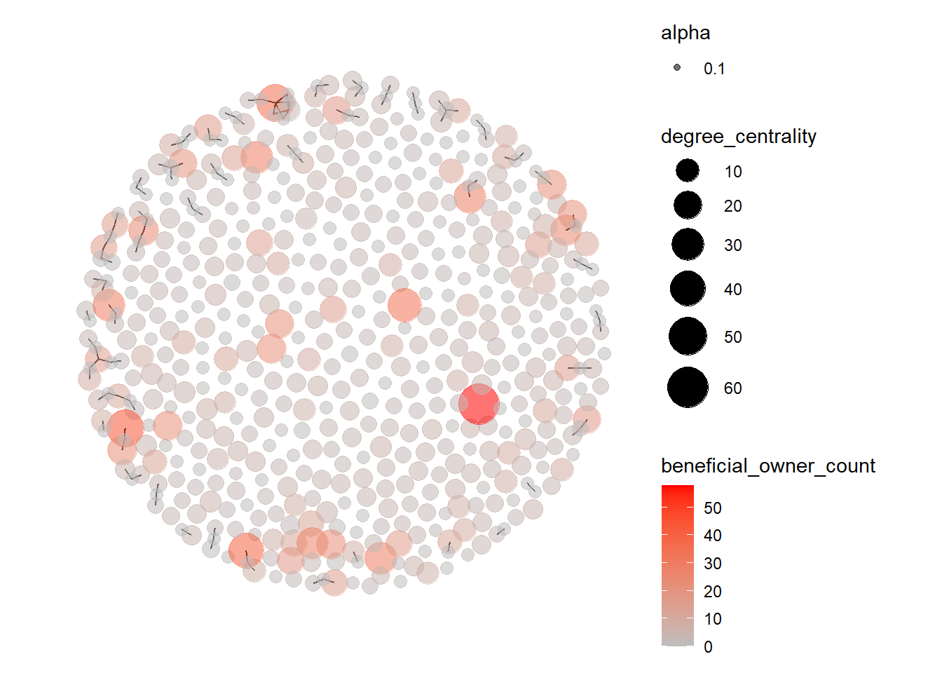 According to an article “Fishy networks: Uncovering the companies and individuals behind illegal fishing globally”, it indicated that unscrupulous operators of vessels involved in IUU fishing takes advantage of a lack of regulations by using complex ownership structures to hide the identities of their ultimate beneficial owners (UBOs). Therefore, a company with more beneficial owners (and correspondingly a higher degree centrality) might be worth looking into further.