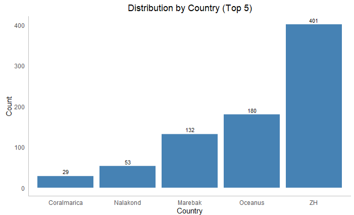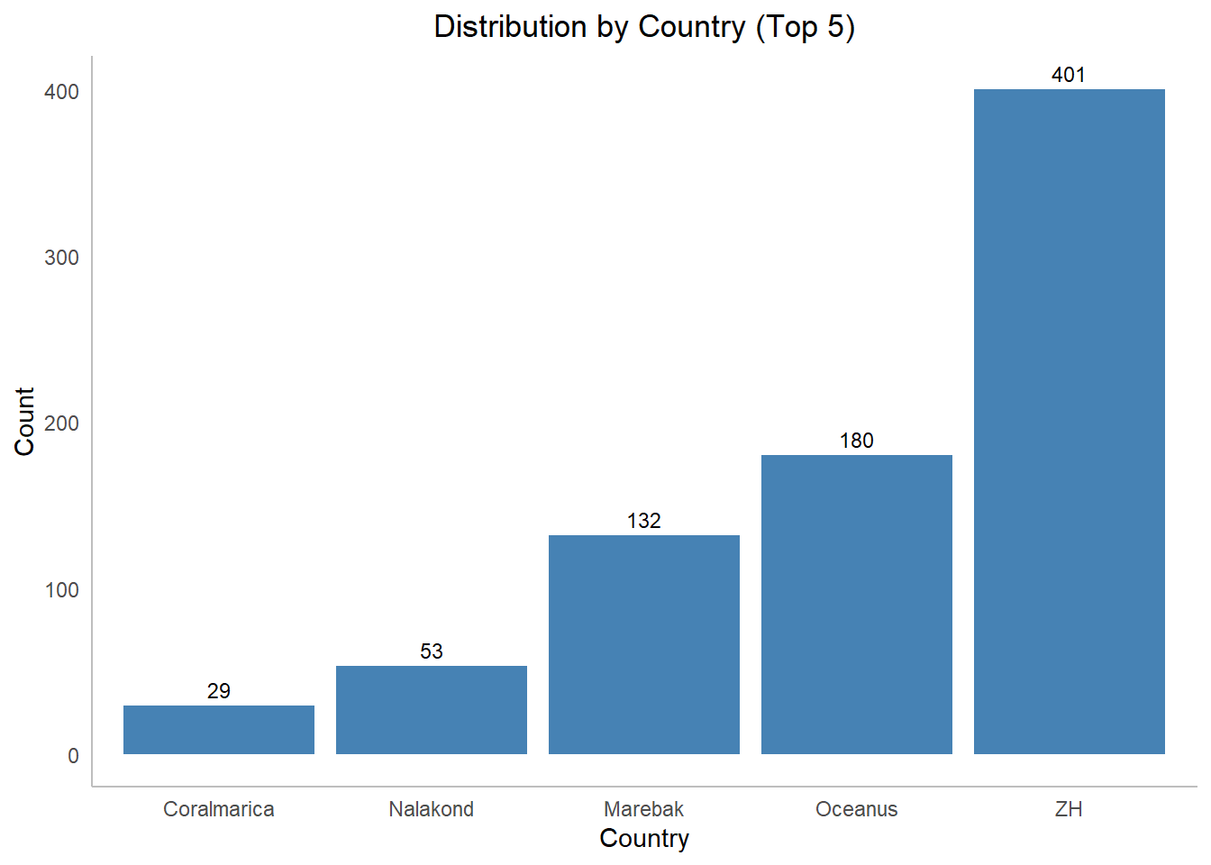 It is useful to deep dive into countries with a high number of companies involved in fishing related activities (ZH and Oceanus from the below plot). In a study by Financial Transparency Coalition, fishing vessels flagged to Asia (particularly China), were found to have the world's largest distant water fleet, with 54.7% tagged as IUU fishing (The Guardian, 2022). Hence, focusing on a higher number of fleet occurrence in a country might potentially help detect IUU fishing.