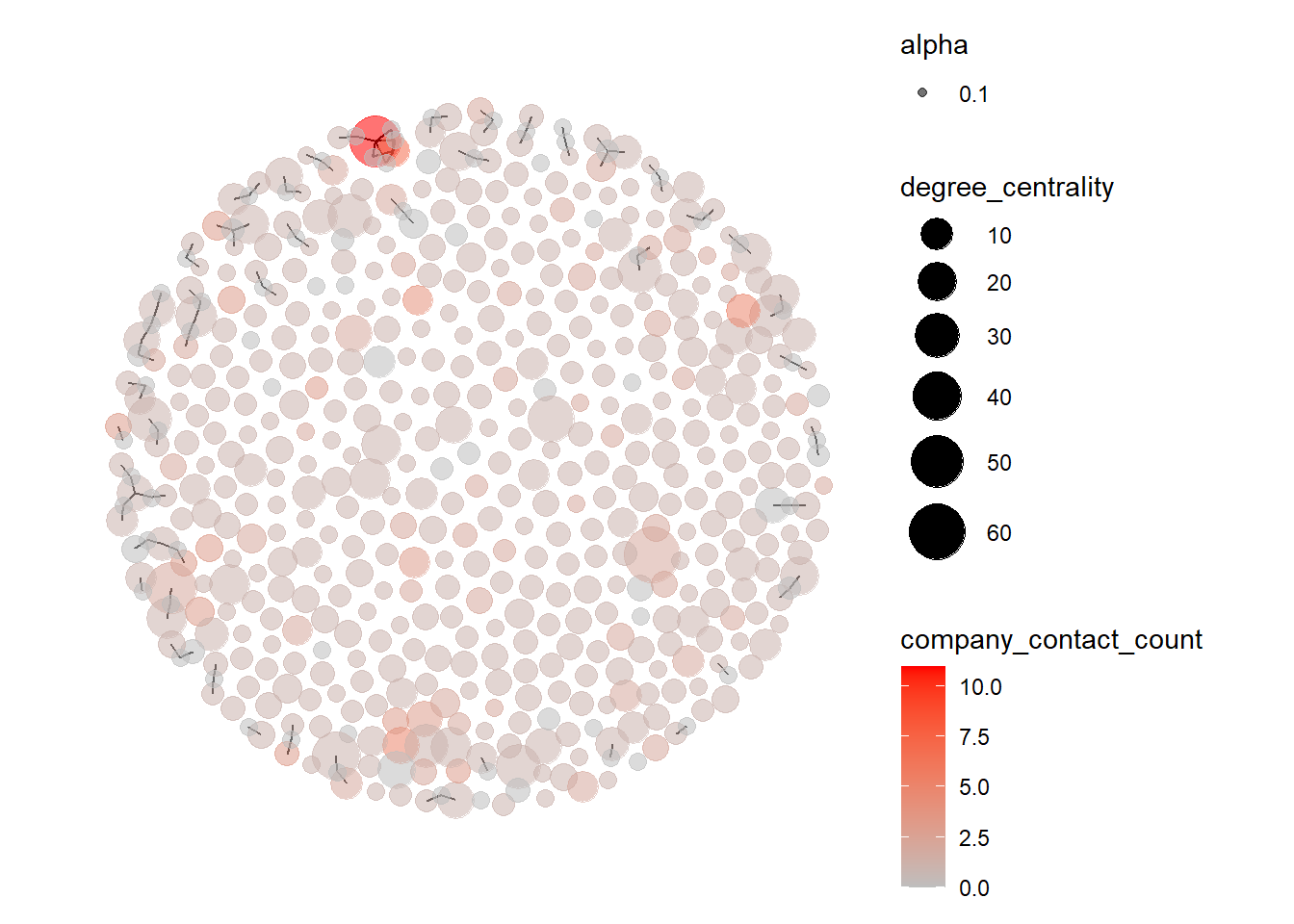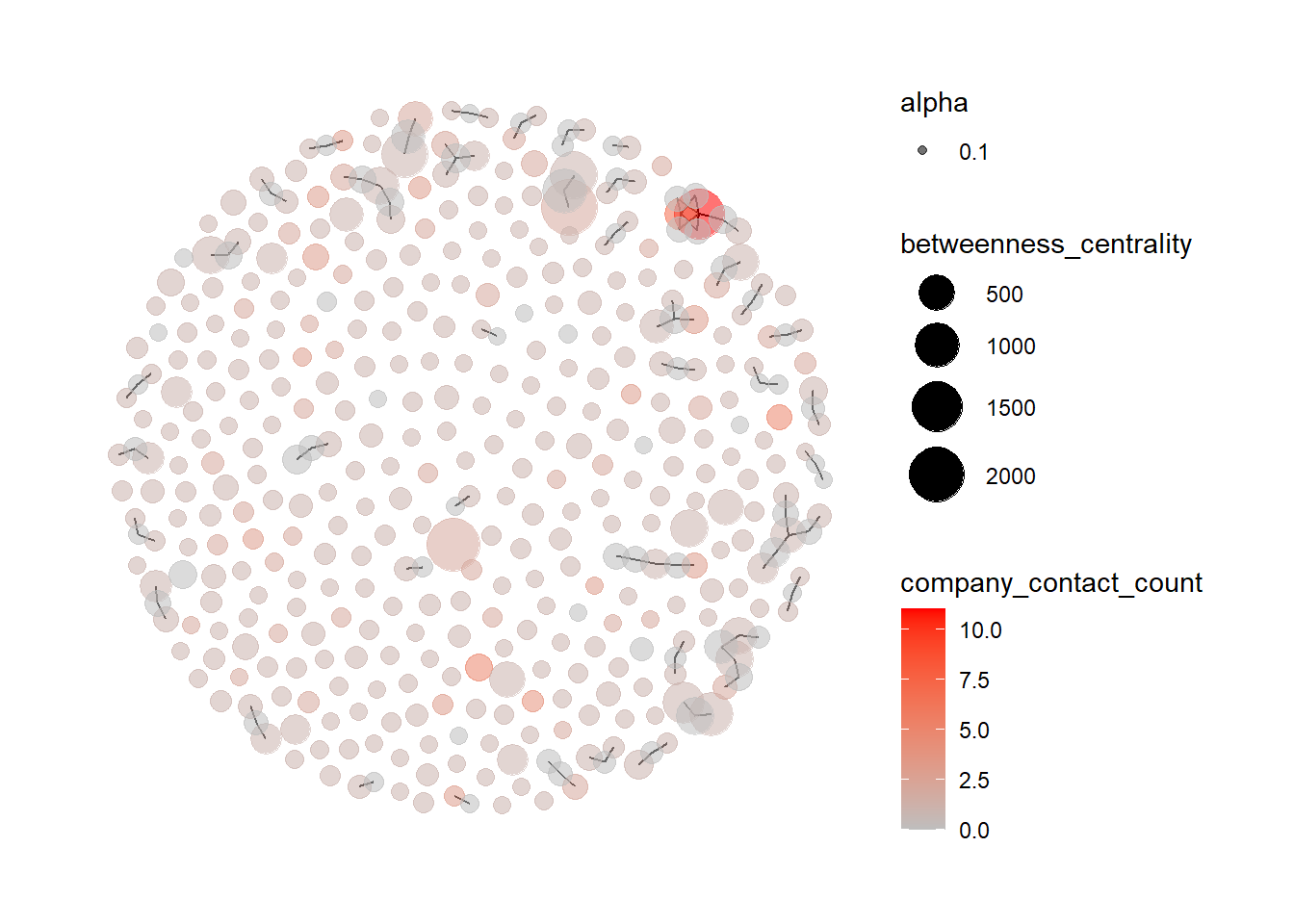 theme_graph()Within this section, we leveraged on top_frac to further filter the mc3_graph_all data set to the top 30%, 20% and 10% based on betweenness_centrality focusing on company contact count before determining the appropriate threshold for our subsequent analysis.