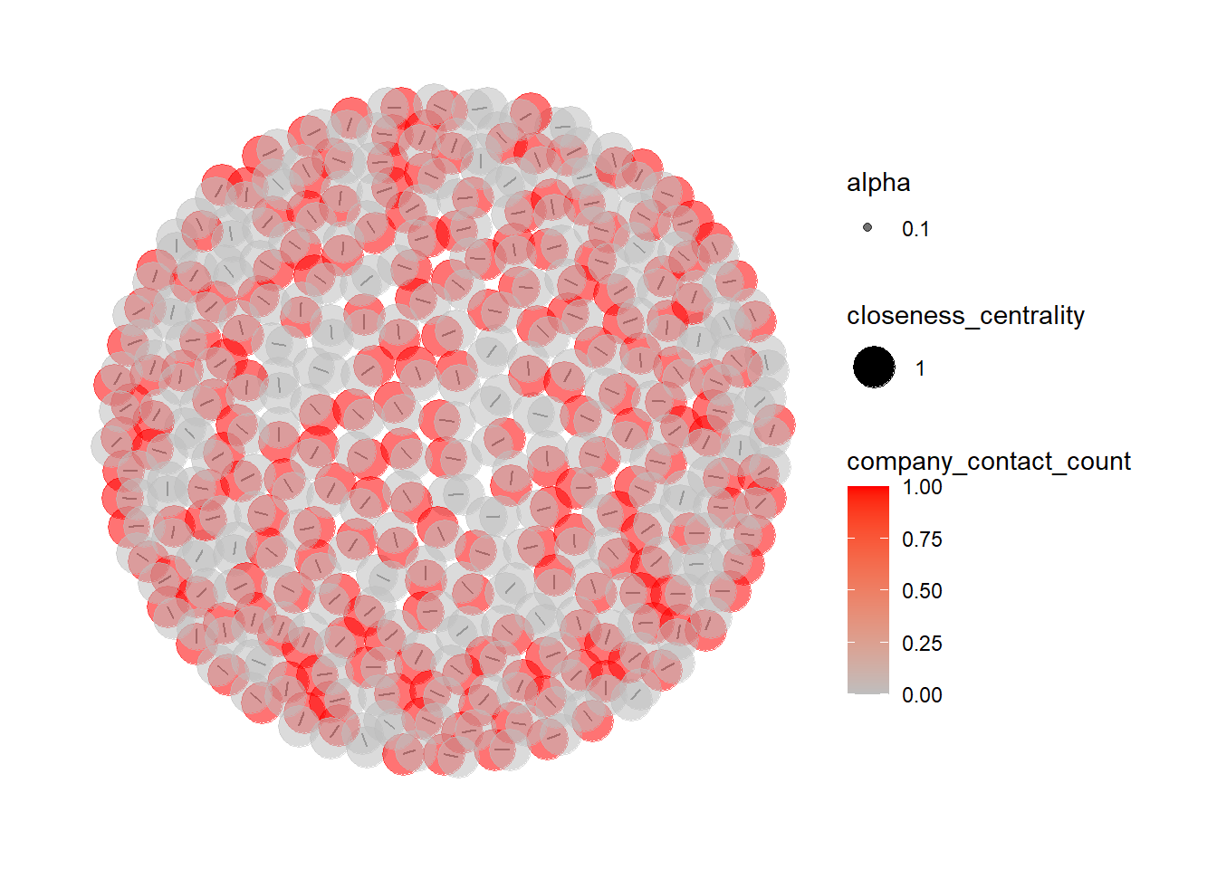 theme_graph()Within this section, we leveraged on top_frac to further filter the mc3_graph_all data set to the top 30%, 20% and 10% based on closeness_centrality focusing on company contact count before determining the appropriate threshold for our subsequent analysis.