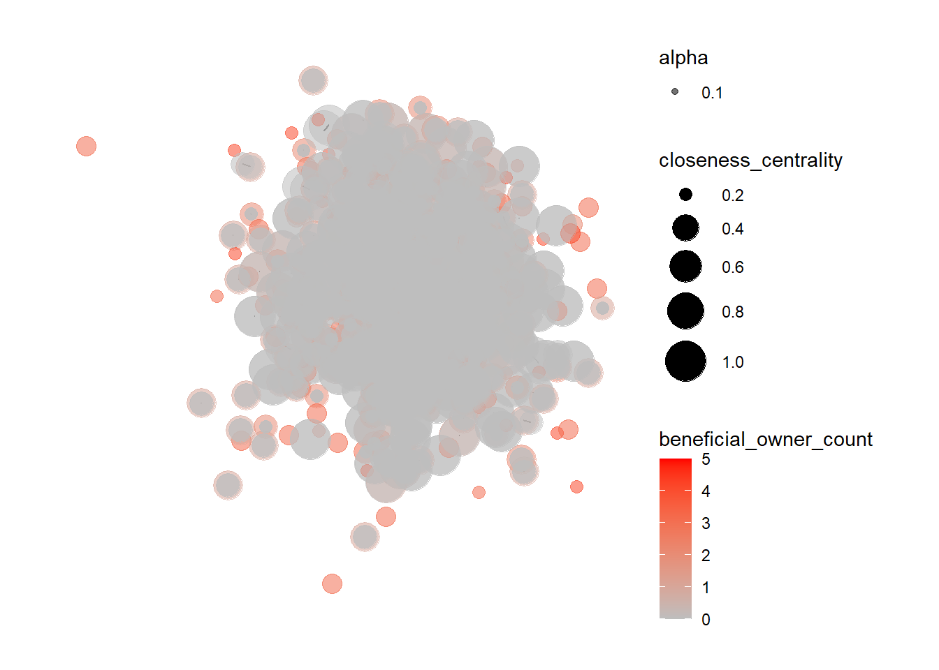 theme_graph()Within this section, we leveraged on top_frac to further filter the mc3_graph_all data set to the top 30%, 20% and 10% based on closeness_centrality focusing on beneficial owner count before determining the appropriate threshold for our subsequent analysis.