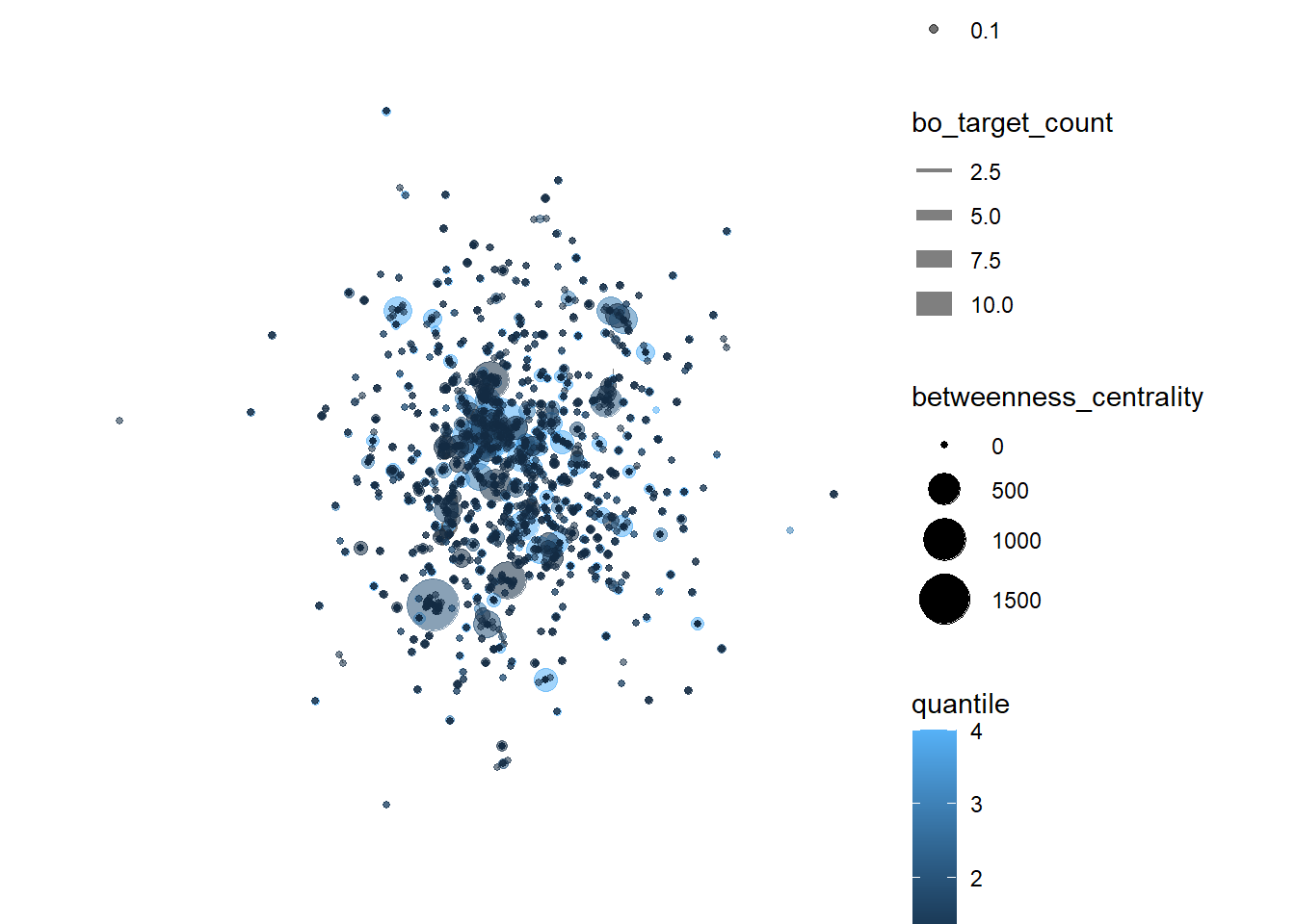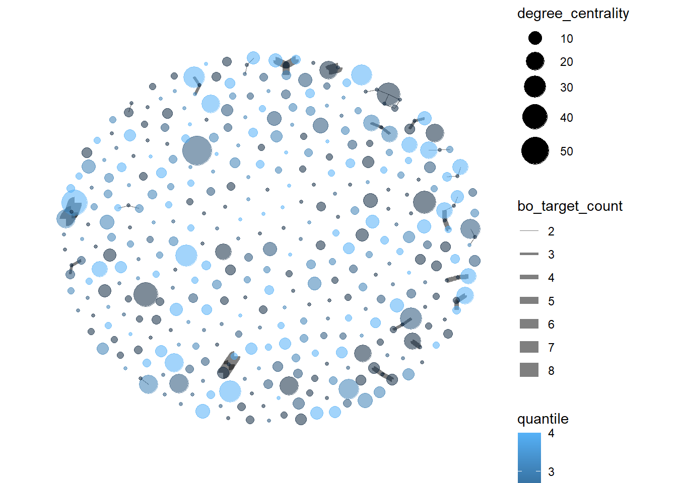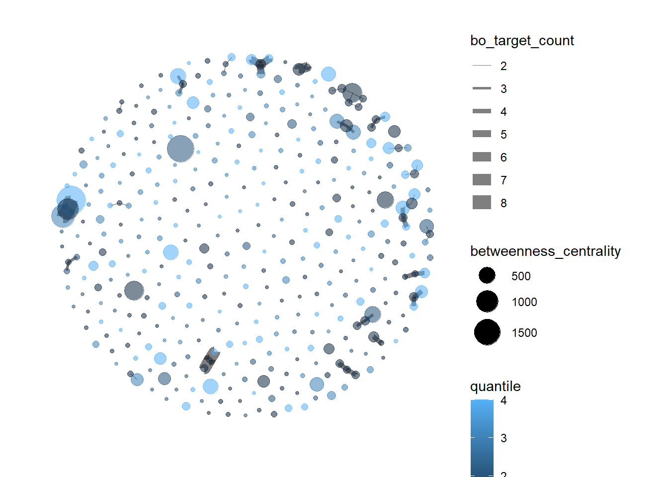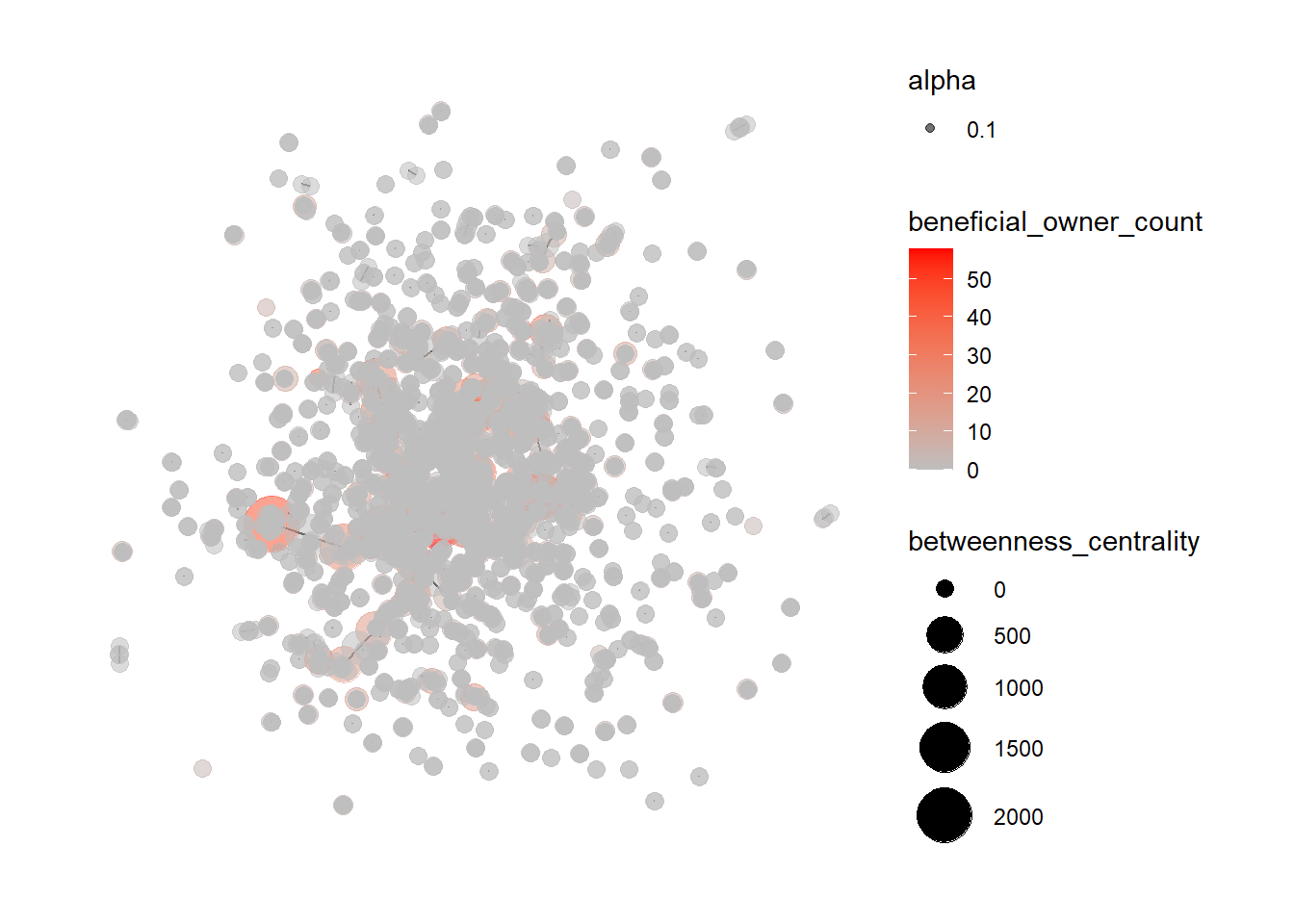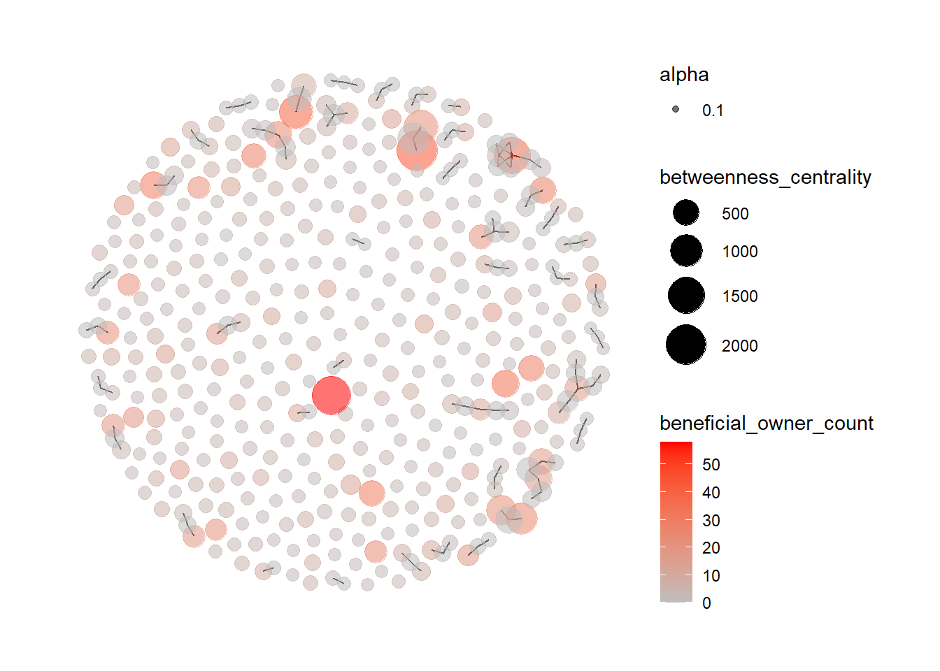 theme_graph()Within this section, we leveraged on top_frac to further filter the mc3_graph_all data set to the top 30%, 20% and 10% based on betweenness_centrality focusing on beneficial owner count before determining the appropriate threshold for our subsequent analysis.