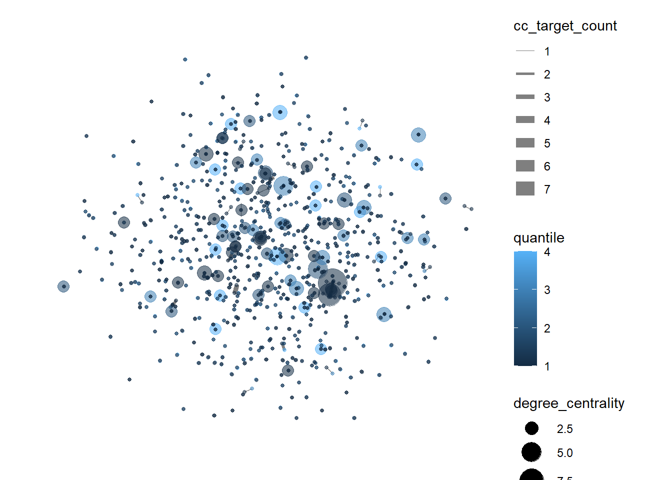 theme_graph()Within this section, we compute degree, betweenness and closeness centrality metrics and store it within mc3_nodes_all for easy reference in our subsequent analysis.